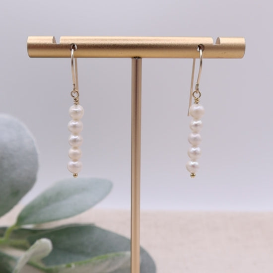 These pearl dangle earrings are timeless, designed to be worn day or night. Each one handcrafted using freshwater pearls and 14k gold-filled wire. They are waterproof, sweat proof, and tarnish resistant.