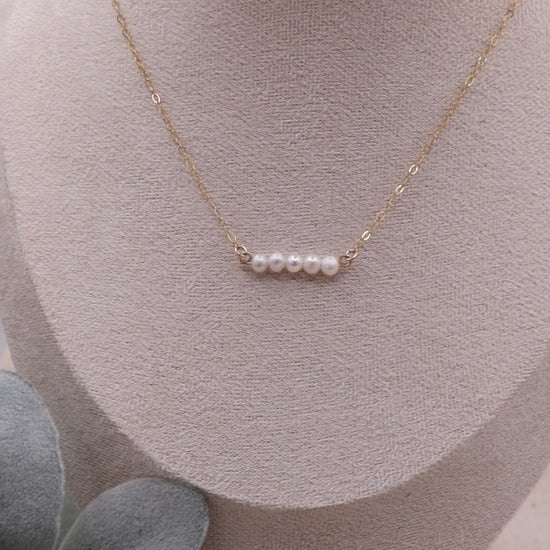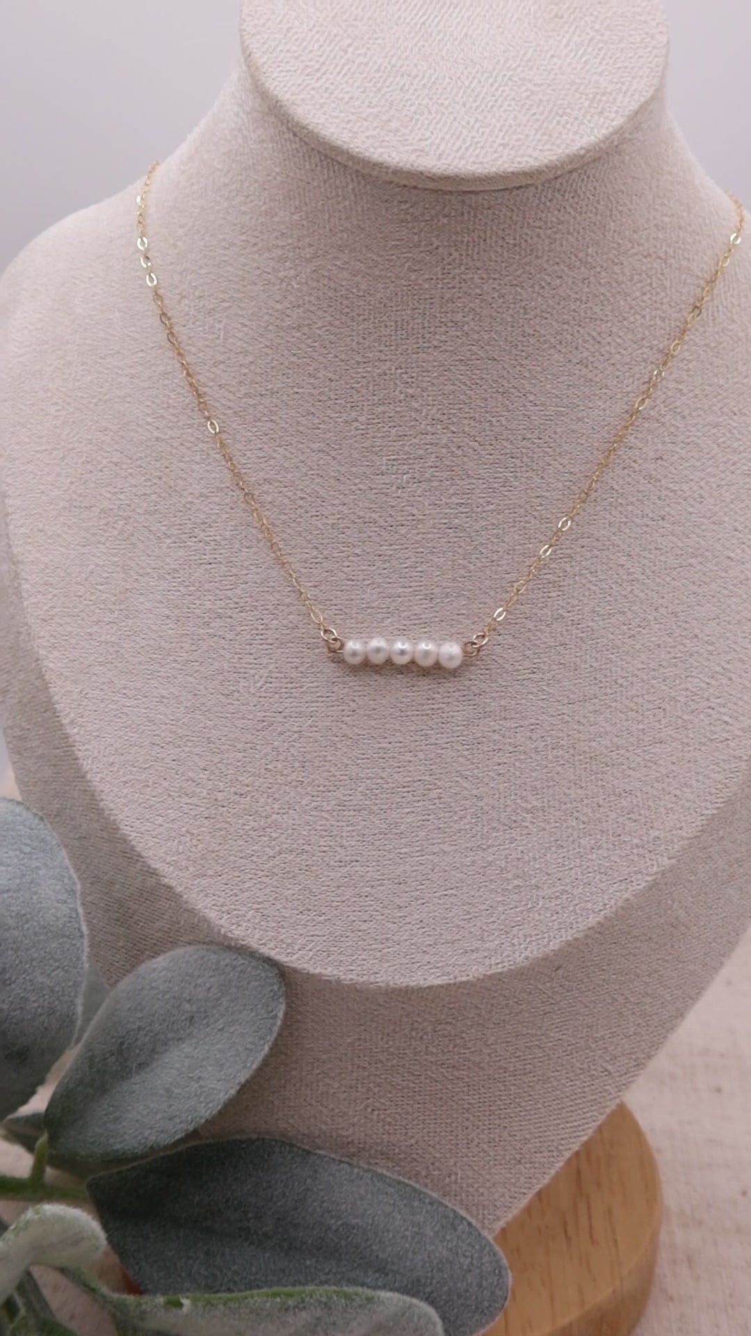 This necklace is a timeless piece, designed to be worn day or night. Handcrafted using freshwater pearls and 14k gold-filled chain. This necklace is waterproof, sweat proof, and tarnish resistant.